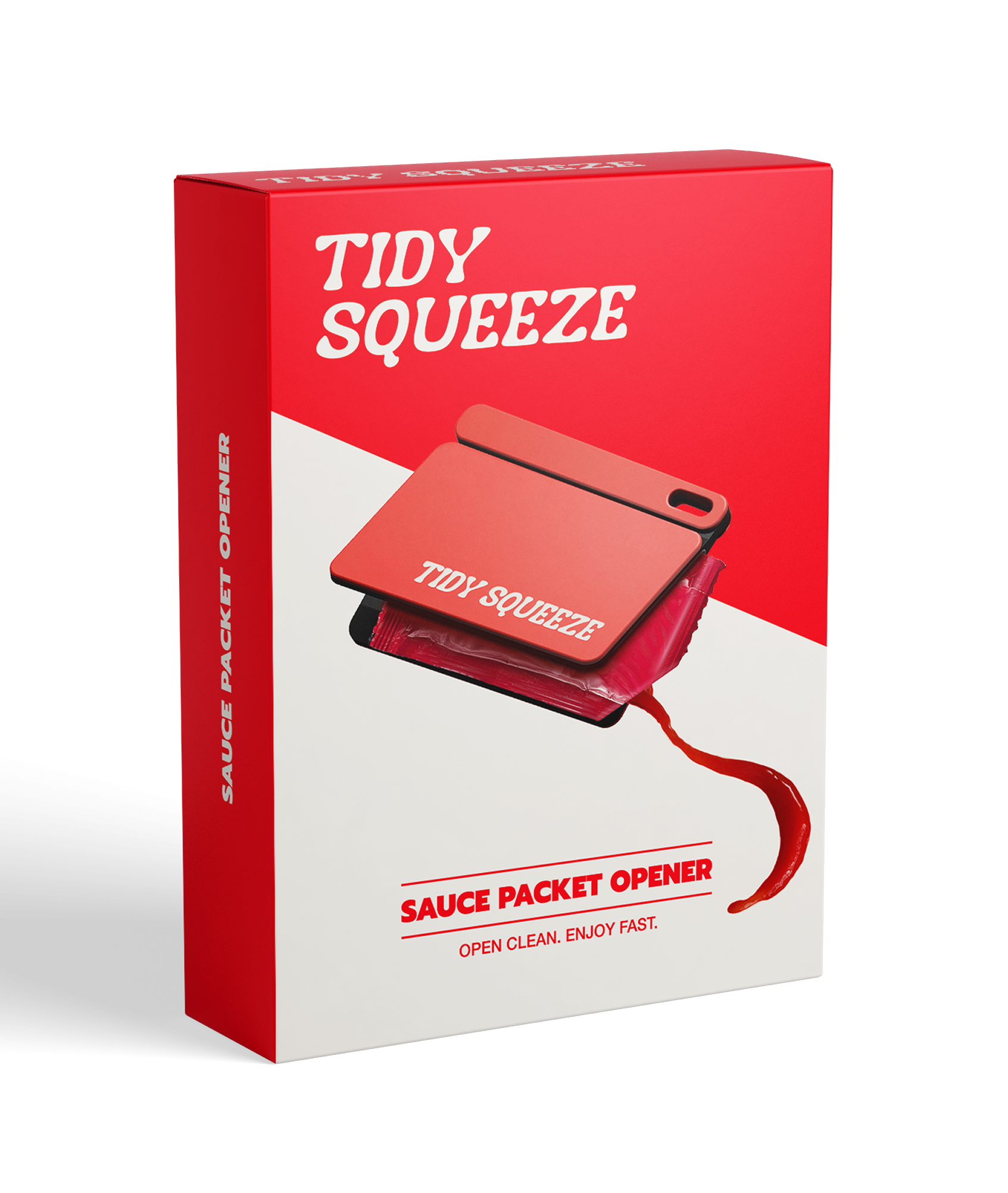Tidy Squeeze is a simple, kid-safe gadget designed to open and squeeze every last drop from your favorite sauce packet withoutthe splatter!